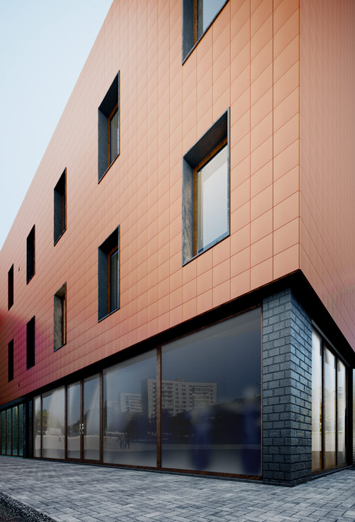 Следует отметить, что отдельные плиты навесных фасадов можно менять, создавая по своему желанию новый внешний вид сооружения, а сами направляющие для плит не обязательно располагать по классической схеме. Возможно декорирования стен с использованием плит разных цветов, создание всевозможных узоров, а также смещение рядов по аналогии с кирпичной кладкой или по принципу рисунка паркета.